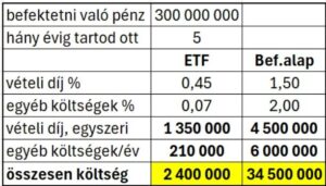Ugye beszéltem Neked az alapkezelőnél vételi díjról és éves költségről. Nézzük mi történik, ha ETF-et veszel a pénzeden és nem befektetési alapot?